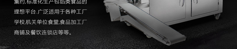 廣泛適用于工廠、學(xué)校、機(jī)關(guān)單位食堂、食品加工廠、商鋪、餐飲連鎖店等,為個(gè)人及相關(guān)企業(yè)提供高速、集約、標(biāo)準(zhǔn)化生產(chǎn)包餡類食品的理想平臺(tái)。