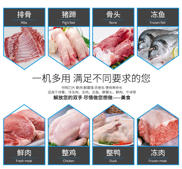 ◆切骨機為平面式機身設計、全不銹鋼封板,符合食品衛(wèi)生標準