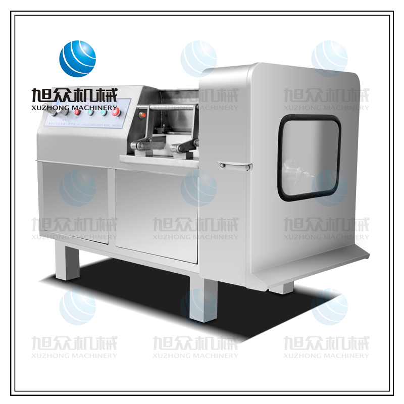 將肉塊、脂肪等主要原料,切割成用戶所需的肉丁,調(diào)整刀柵的尺寸可切出肉絲、肉片、肉丁。尺寸的大小,由刀柵中刀片數(shù)量來決定。